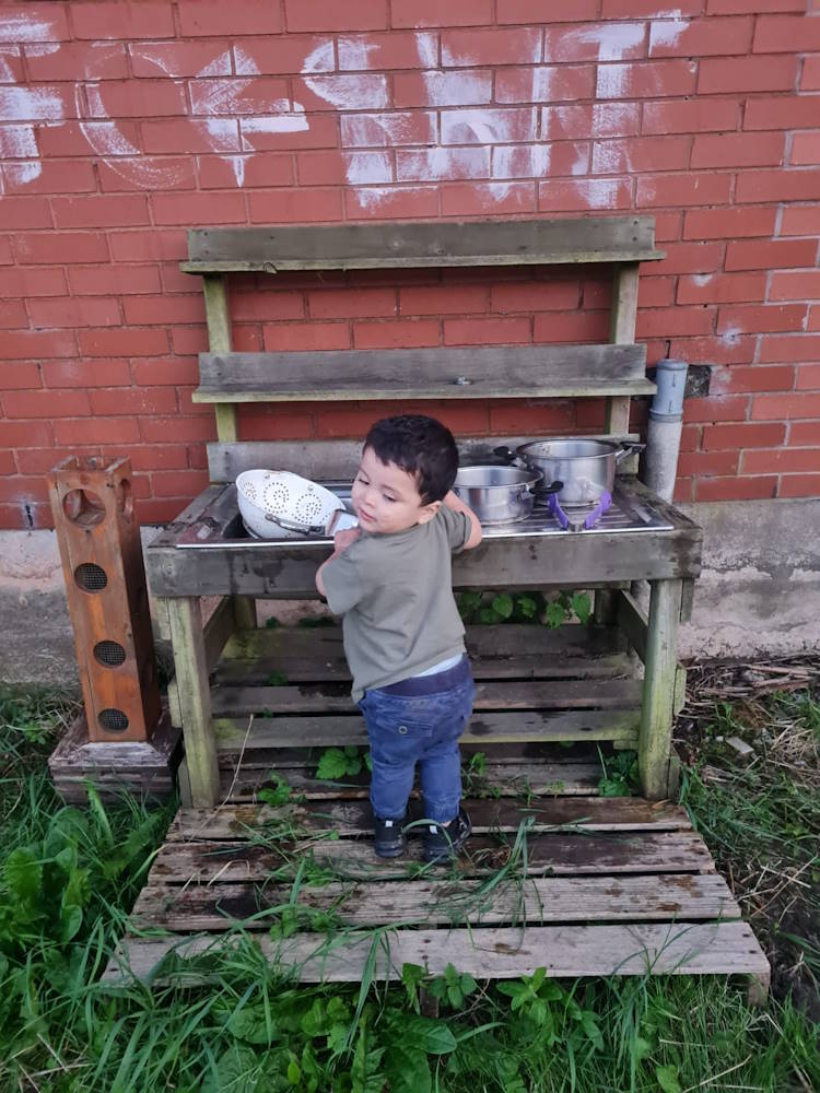 played in the mud kitchen